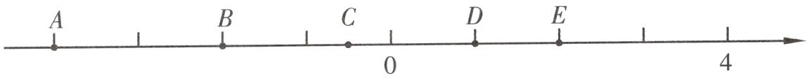 2. 先标出数轴中各刻度上的数,再说出点A,B,C,D,E表示的数。