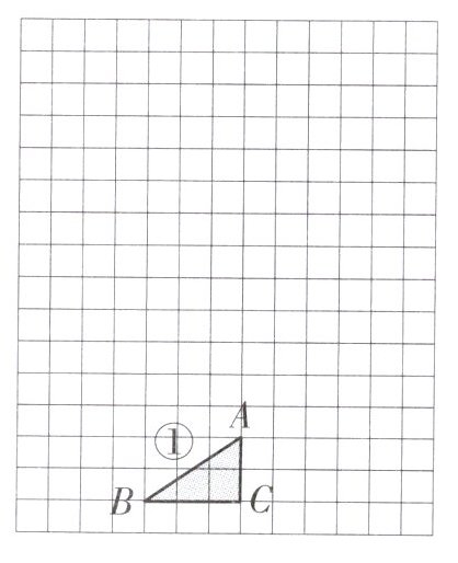 4. 在下图中,画出将图①先向右平移4格,再向上平移10格后的图形;画出三角形ABC按2 : 1扩大后的图形。