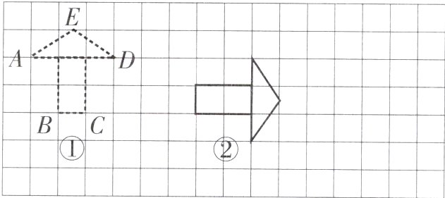 5. 在下图中,画出图②以BC为对称轴的轴对称图形;画出梯形ABCD绕点C顺时针旋转90°后的图形。