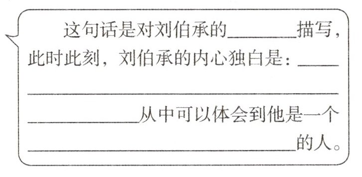 2. 读选文中画“﹏﹏”的句子,根据提示将批注补充完整,体会刘伯承的内心。