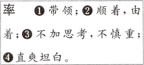 3. 语段中画线的“率”字在字典中的释义如右图。“率”字在“率领”中的意思是( ),在“直率”中的意思是( )。(填序号)