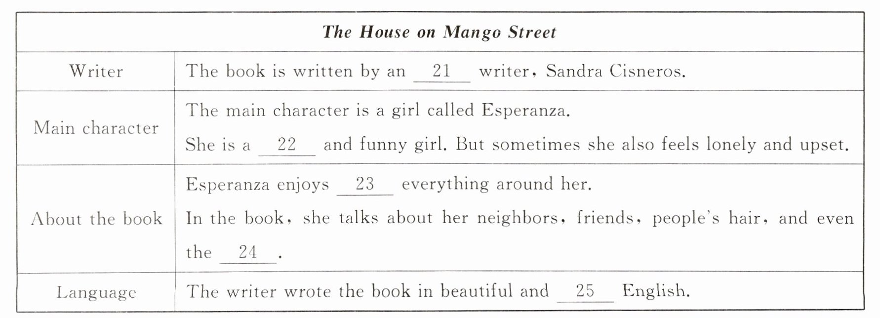 听一篇短文。根据短文内容,写出下面表格中所缺的单词,每空仅填一词。短文读两遍。