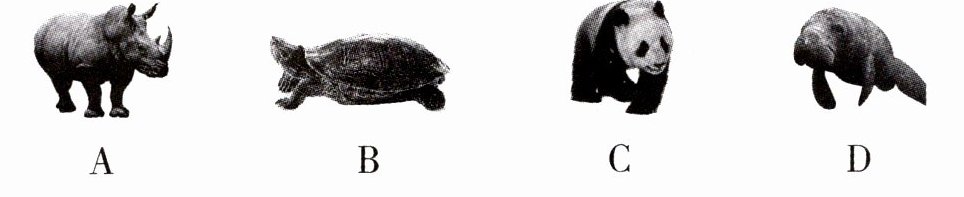 ①panda ________ ② rhinoceros ________ ③ turtle ________ ④ manatee ________
