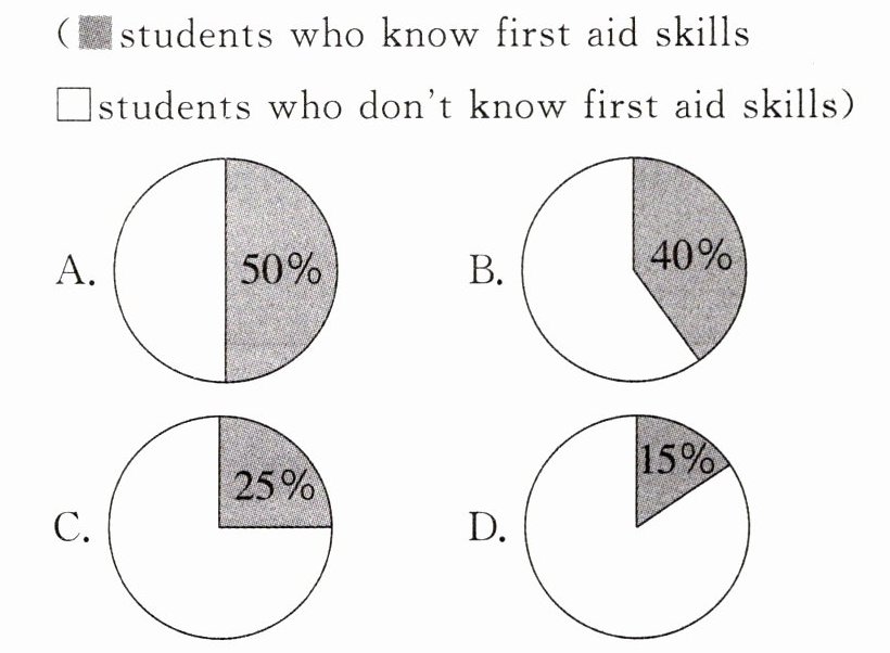 Students may have accidents at school. About 400,000 students get hurt in the UK every year. According to the Red Cross, only 25% of students know first aid skills. Most students feel nervous when they face accidents. It's very important for more students to take a first aid course. In this way, they will be prepared when accidents happen. If parents can only teach children one thing about first aid, they should teach them how to stay cool first. Things will get worse if they are too scared.