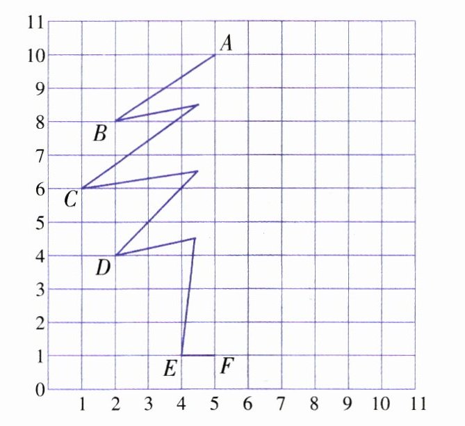 2. 以线段AF所在的直线为对称轴,画出图形的另一半,并分别用数对表示和B、C、D、E对称的四个点$B^{'}$、$C^{'}$、$D^{'}$、$E^{'}$的位置。