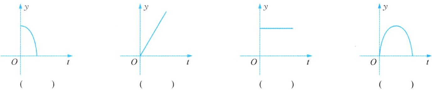 11. 在如图所示的几个图象下的括号内分别填上对应函数的字母($t$表示时间,$y$可以表示速度、路程或离地高度):