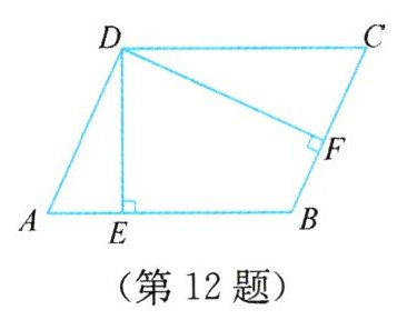 12. 如图,□ABCD 的周长是 36,DE⊥AB 于点 E,DF⊥BC 于点 F,且 DE = 4,DF = 5,求□ABCD 的面积.