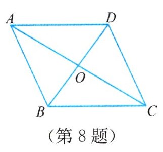 8. 如图,在□ABCD 中,对角线 AC = 16,BD = 12,边 AB = 10,求该平行四边形的面积.
