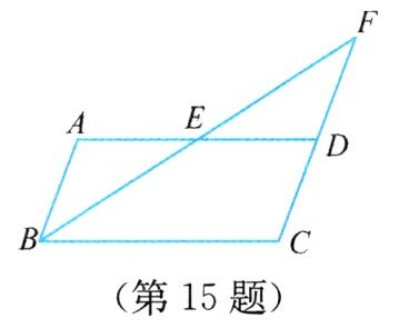 15. 如图,在□ABCD 中,点 E 是 AD 中点,BE 的延长线与 CD 的延长线相交于点 F.