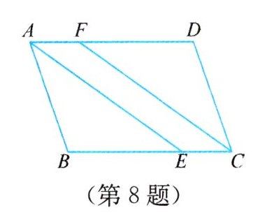8. 如图,在□ABCD 中,AE,CF 分别是∠BAD,∠BCD 的平分线. 试证明四边形 AECF 是平行四边形.