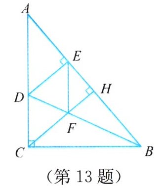 13. 如图,在Rt△ABC中,∠ACB = 90°,∠ABC的平分线BD交AC于点D,CH⊥AB交BD于点F,DE⊥AB于点E. 四边形CDEF是菱形吗?请说明理由.