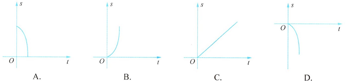 4. 苹果熟了,从树上落下所经过的路程$s$与下落的时间$t$满足$s=\frac{1}{2}gt^{2}$($g$是不为0的常数),则$s$与$t$的函数图象大致是【 】