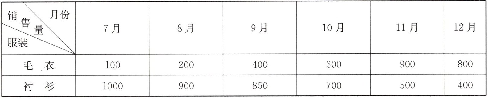 12. 下面是某服装店某年下半年毛衣、衬衫销售量的统计表,请据此绘制你认为合适的统计图,并对该店的进货提出一些建议.