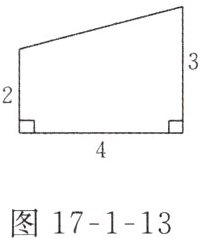 3. 在一张直角三角形纸片的两直角边上各取一点,分别沿斜边中点与这两点的连线剪去两个三角形,剩下的部分是如图17-1-13所示的直角梯形,其中三边长分别为2,4,3,则原直角三角形纸片的斜边长是( )