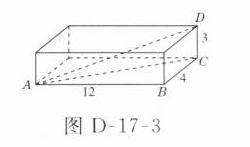 铁丝最长是A,D两点间的距离. 因为$AD^{2}=AC^{2}+DC^{2}$,$AC^{2}=AB^{2}+BC^{2}$,所以$AD^{2}=AB^{2}+BC^{2}+DC^{2}=12^{2}+4^{2}+3^{2}=13^{2}$,所以$AD = 13cm$.