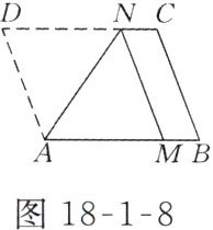 6. 如图18-1-8所示,将□ABCD折叠,使顶点D恰好落在AB边上的点M处,折痕为AN,那么对于结论:①MN//BC,②MN = AM. 下列说法正确的是( )