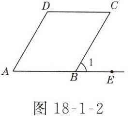 1. 如图18-1-2所示,在□ABCD中,E是AB延长线上一点,若∠D = 120°,则∠1等于( )