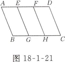 1. 如图18-1-21所示,在□ABCD中,E,F和G,H分别是AD和BC的三等分点,则图中平行四边形的个数是( )