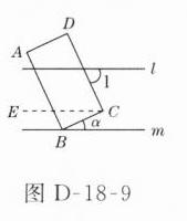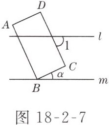 7. 如图18 - 2 - 7所示,已知l//m,矩形ABCD的顶点B在直线m上,且∠1 = 65°,则∠α = ________.