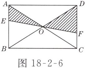 6. 如图18 - 2 - 6所示,EF过矩形ABCD对角线的交点O,且分别交AB,CD于E,F,那么阴影部分的面积是矩形面积的( )