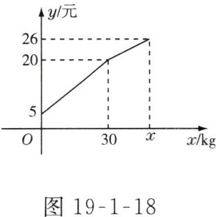 5. 暑假里,小明进行进城销售土豆的实践活动.为了方便,他带了一些零钱备用,按市场价售出一些后,又降价出售,售出土豆的千克数与他手中持有的钱数(含备用零钱)的关系如图19-1-18所示,结合图象回答下列问题: