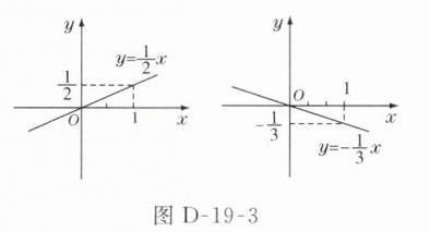 描点、连线,y = $\frac{1}{2}x$与y = $-\frac{1}{3}x$的图象如图D - 19 - 3所示.