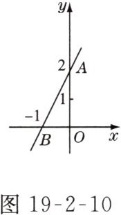 2. 如图 19 - 2 - 10 所示,一次函数$y = 2x + m$的图象过$A$,$B$两点,则方程$2x + m = 0$的解是( )