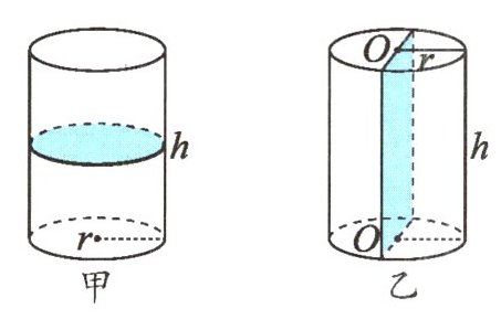 (4)右边是对同一个圆柱的两种不同切法(平均切成相同的两份)。甲种切法,表面积比原来增加( ),乙种切法,表面积比原来增加( )。