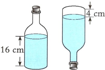3. 一个装了360 mL饮料的瓶子,饮料的高度是16 cm,把盖子塞紧后倒置,没有饮料的部分是圆柱形,高度是4 cm,求这个瓶子的容积。(瓶塞的体积忽略不计)