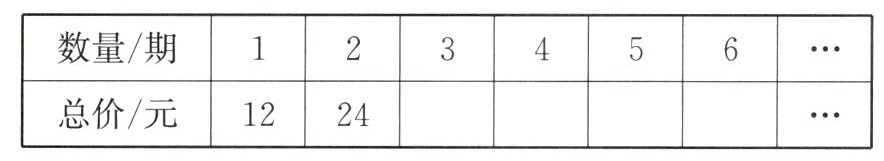 3.订阅一期《少年天地》要12元,先把下表填完整再解答问题。