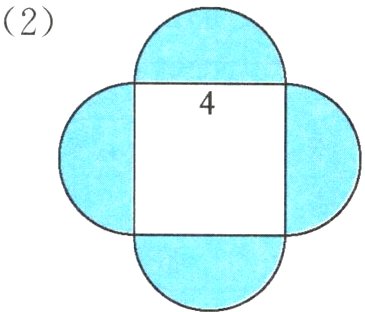 面积:$3.14\times(4\div2)^2\times2 = 3.14\times4\times2$