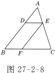 2-1 如图27-2-8所示,已知在△ABC中,点D,E,F分别是边AB,AC,BC上的点,DE//BC,EF//AB,且AD∶DB = 3∶5,那么CF∶CB等于( )