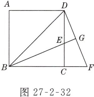 14. 如图27-2-32,已知在正方形ABCD中,BE平分∠DBC,且交CD边于点E,将△BCE绕点C顺时针旋转到△DCF的位置,并延长BE交DF于点G.