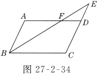 例1 如图27-2-34所示,在□ABCD中,E是CD的延长线上一点,BE与AD交于点F,DE = $\frac{1}{2}$CD.