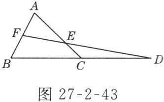 9. 如图27-2-43所示,已知△ABC,延长BC到D,使CD = BC. 取AB的中点F,连接FD交AC于点E.