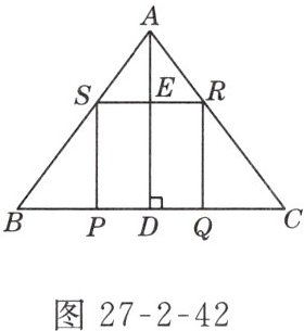 8. 如图27-2-42所示,在等腰三角形ABC中,底边BC = 60 cm,高AD = 40 cm,四边形PQRS是正方形.