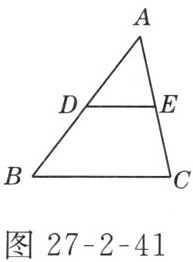 6. 在△ABC中,点D、点E分别是边AB,AC的中点,如图27-2-41所示,则△ADE与△ABC的周长之比等于________.