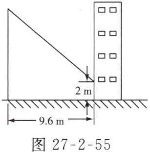 3. 赵亮同学想利用影长测量学校旗杆的高度,如图27 - 2 - 55所示,他在某一时刻测得直立在地面上1 m长的标杆其影长为1.2 m,同时旗杆的影子一部分在地面上,另一部分在某一建筑的墙上,分别测得其长度为9.6 m和2 m,则学校旗杆的高度为________m.