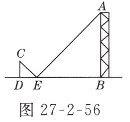 4. 如图27 - 2 - 56所示,小华在地面上放置一个平面镜E来测量铁塔AB的高度,镜子与铁塔的距离EB = 20 m,镜子与小华的距离ED = 2 m时,小华刚好从镜子中看到铁塔顶端点A,已知小华的眼睛距地面的高度CD = 1.5 m,则铁塔AB的高度是________m.