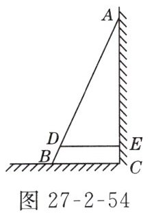 2. 如图27 - 2 - 54所示,AB是斜靠在墙壁上的长梯,梯脚B距墙1.6 m,梯上点D距墙1.4 m,BD长0.55 m,则梯子的长为( )