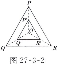 例1 如图27-3-2所示,O是等边△PQR的中心,P',Q',R'分别是OP,OQ,OR的中点,则△P'Q'R'与△PQR是位似三角形,此时△P'Q'R'与△PQR的相似比,位似中心分别为( )