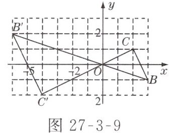 解:(1)如图27-3-9所示,延长BO到点B',使OB' = 2OB;延长CO到点C',使OC' = 2OC,连接B'C',则△OB'C'就是要画的图形.