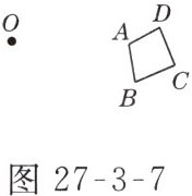 解:(1)如图 D - 27 - 8 所示,连接 $OA$,并延长到 $A'$,使 $OA' = 1.5OA$。 (2)连接 $OB$,$OC$,$OD$,并延长到 $B'$,$C'$,$D'$,使 $OB' = 1.5OB$,$OC' = 1.5OC$,$OD' = 1.5OD$。 (3)顺次连接 $A'$,$B'$,$C'$,$D'$,则四边形 $A'B'C'D'$ 就是满足条件的四边形。