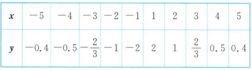 例1 画出反比例函数$y = \frac{2}{x}$的图象.