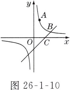 8. 如图26 - 1 - 10所示,已知反比例函数的图象经过点$A$,$B$,点$A$的坐标为$(1,3)$,点$B$的纵坐标为1,点$C$的坐标为$(2,0)$.