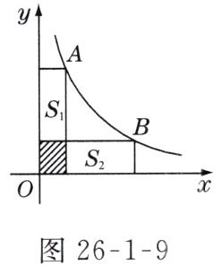 7. 如图26 - 1 - 9所示,点$A$,$B$是双曲线$y = \frac{3}{x}$上的点,分别经过$A$,$B$两点向$x$轴、$y$轴作垂线段,若$S_{阴影}=1$,则s1+s2=_________.