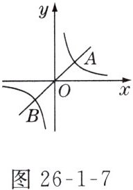 5. 如图26 - 1 - 7所示,双曲线$y = \frac{k}{x}$与直线$y = mx$相交于$A$,$B$两点,$B$点的坐标为$(-2,-3)$,则$A$点的坐标为_______.