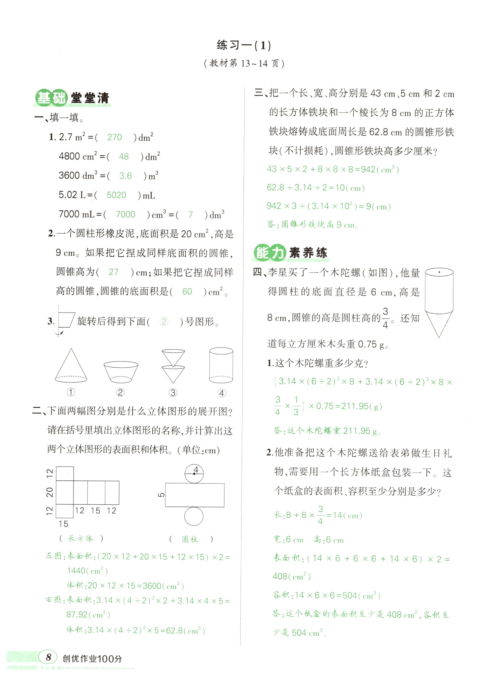 注:目前有些书本章节名称可能整理的还不是很完善,但都是按照顺序排列的,请同学们按照顺序仔细查找。练习册 2025年状元成才路创优作业100分六年级数学下册北师大版 答案主要是用来给同学们做完题方便对答案用的,请勿直接抄袭。
