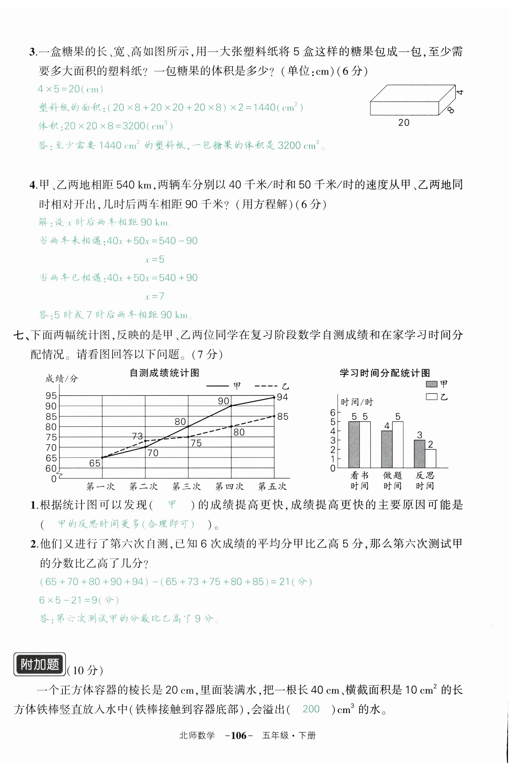 注:目前有些书本章节名称可能整理的还不是很完善,但都是按照顺序排列的,请同学们按照顺序仔细查找。练习册 2025年状元成才路创优作业100分五年级数学下册北师大版 答案主要是用来给同学们做完题方便对答案用的,请勿直接抄袭。