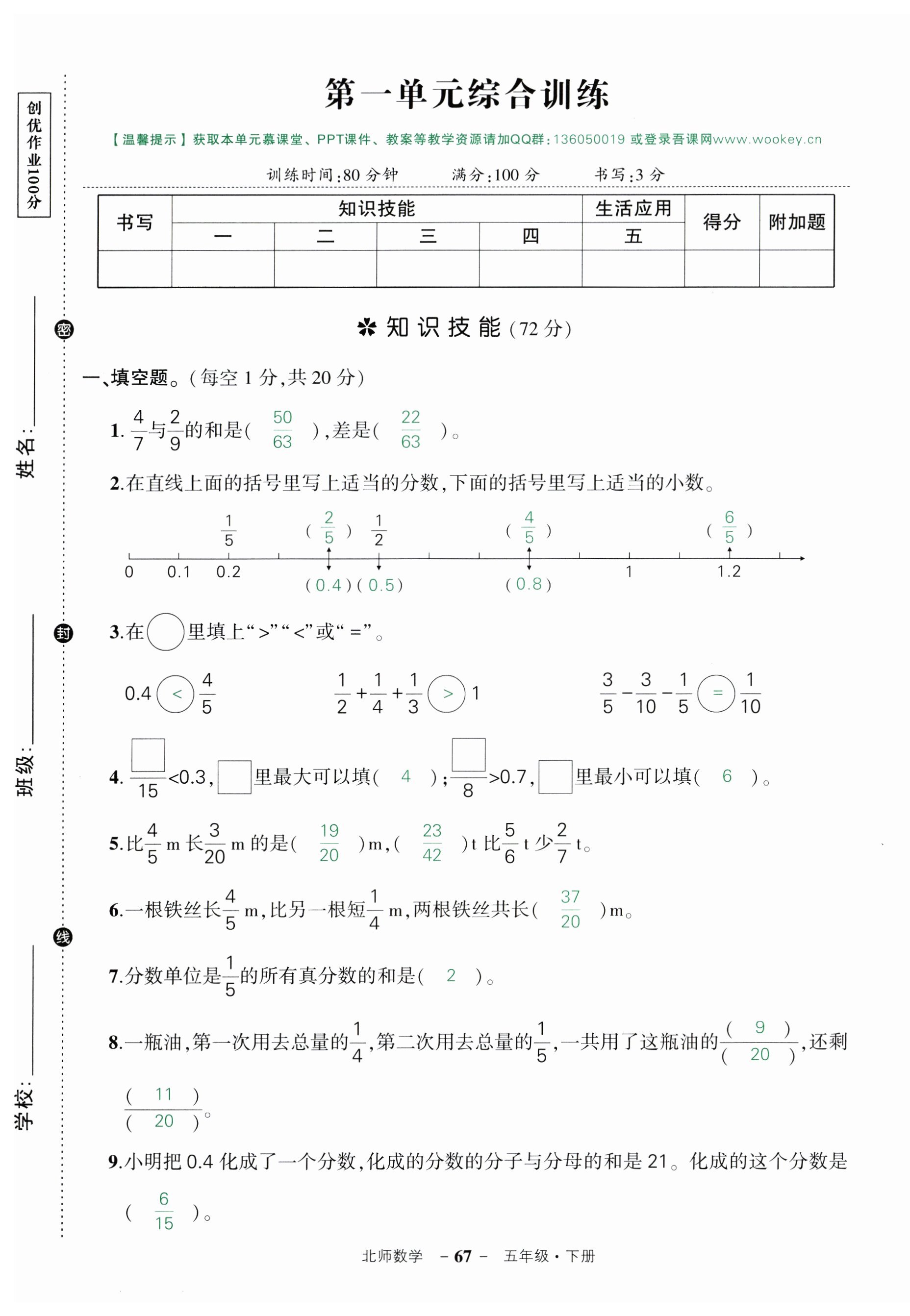 注:目前有些书本章节名称可能整理的还不是很完善,但都是按照顺序排列的,请同学们按照顺序仔细查找。练习册 2025年状元成才路创优作业100分五年级数学下册北师大版 答案主要是用来给同学们做完题方便对答案用的,请勿直接抄袭。